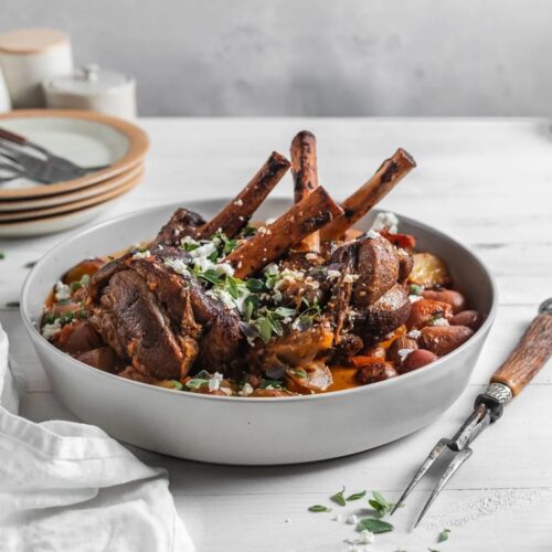 - Αν δεν έχετε Instant Pot Duo Crisp ή Pro Crisp, αναποδογυρίστε το αρνί και τις πατάτες σε ένα μεγάλο ταψί και ψήστε το στο φούρνο στους 200°C μέχρι να ροδίσουν ελαφρά.
