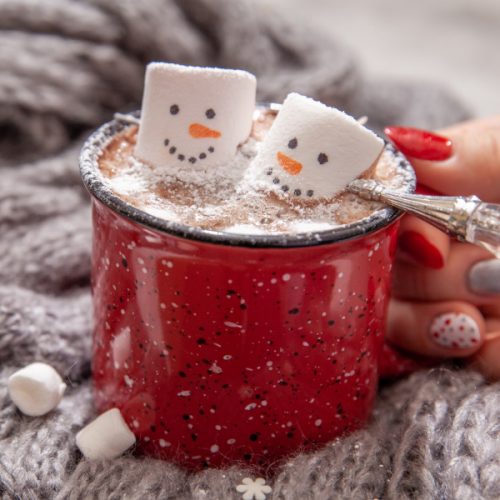 - Διακοσμήστε τη ζεστή σοκολάτα με το marshmallow σε σχήμα χιονάνθρωπου.